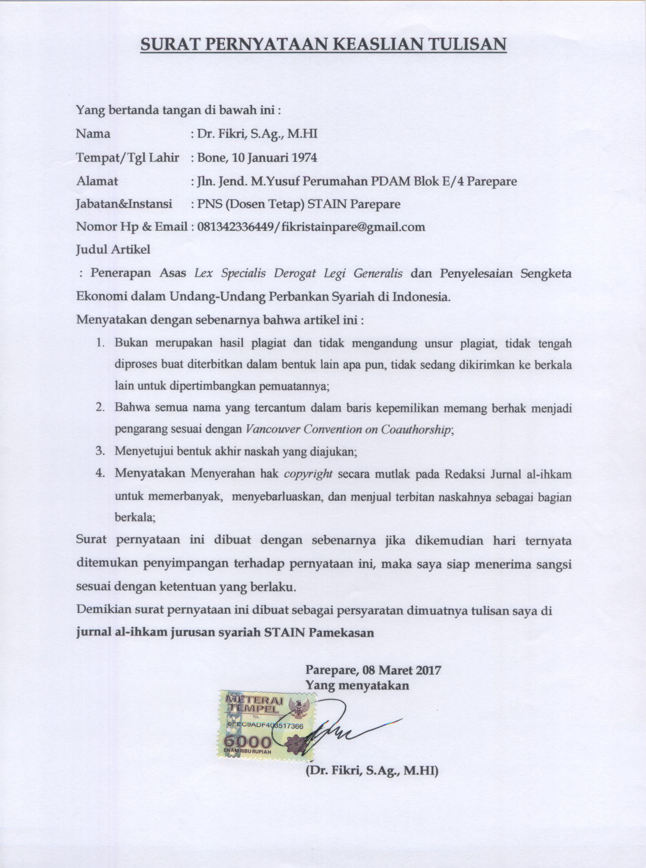 In order to be accepted and published by Al-Ihkam: Jurnal Hukum dan Pranata Sosial, author(s) submitting the article manuscript should complete all the review stages. By submitting the manuscript, the author(s) agreed to the following terms: